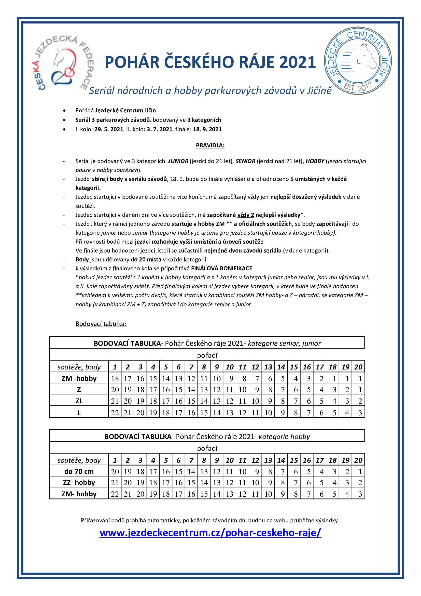 Pravidla, harmonogram, informace, bezpečnostní pravidla a novinky sledujte na JIS – www.jezdectvi.org/zavody